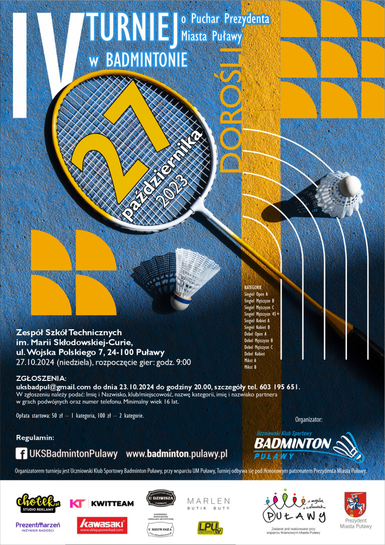 IV Turniej o Puchar Prezydenta Miasta Puławy w badmintonie