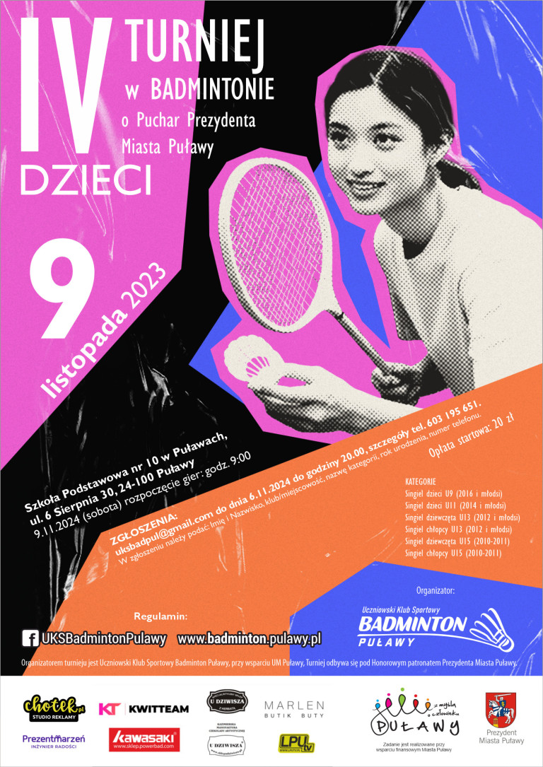 IV Turniej o Puchar Prezydenta Miasta Puławy w Badmintonie dla Dzieci i Młodzieży do 16 lat! 🏆